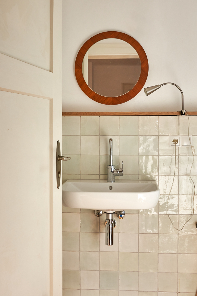 Das Tageslichtbad ist schlicht gestaltet und gut gepflegt. Dusche, WC und Waschbecken entsprechen modernen Standards. Die schönen, hellen Fliesen im Vintage-Stil verleihen dem Bad eine freundliche Atmosphäre und bilden einen angenehmen Kontrast zu den warmen Tönen des Holzbodens. An kühleren Tagen sorgt ein Handtuchheizkörper für angenehme Temperaturen. Die Materialien sind funktional gewählt und die Fläche ist effizient genutzt. Trotz der kompakten Größe bietet das Bad alles, was für einen komfortablen Aufenthalt notwendig ist. Handtücher und ein Föhn sind vorhanden.
